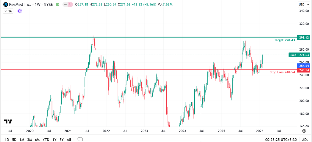 Here are remaining four stock recommendations for this week: Resmed Inc (RMD), United Airlines Holdings (UAL), Universal Health Services (UHS), and Ventas, Inc (VTR). I think these stocks are looking good and could soon hit their all-time highs and keep climbing higher. Check out the images below for the target and stop-loss info for each of these stocks!
